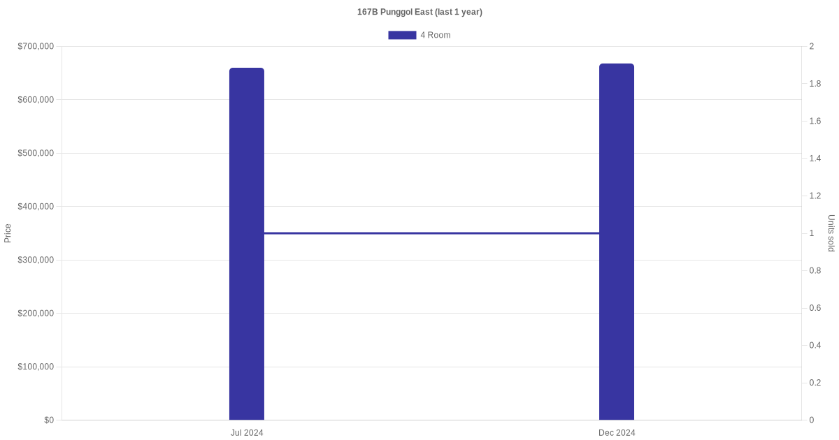 There were a total of 2 resale transactions in the last 3 years for units in block 167B Punggol East, with the latest one recorded in Dec 2024.