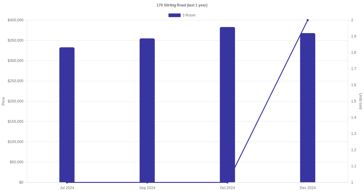 Below is a quick summary of the resale transactions volume and average price trends for the 3 room units at 170 Stirling Road.