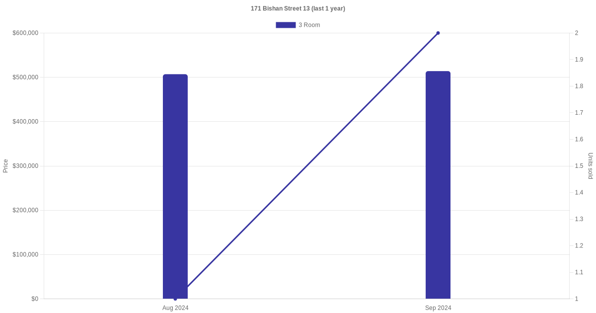 | Aug 2024 | $2,500 | 3 Room | Blk 171 Bishan Street 13 3 Room | Bishan |
