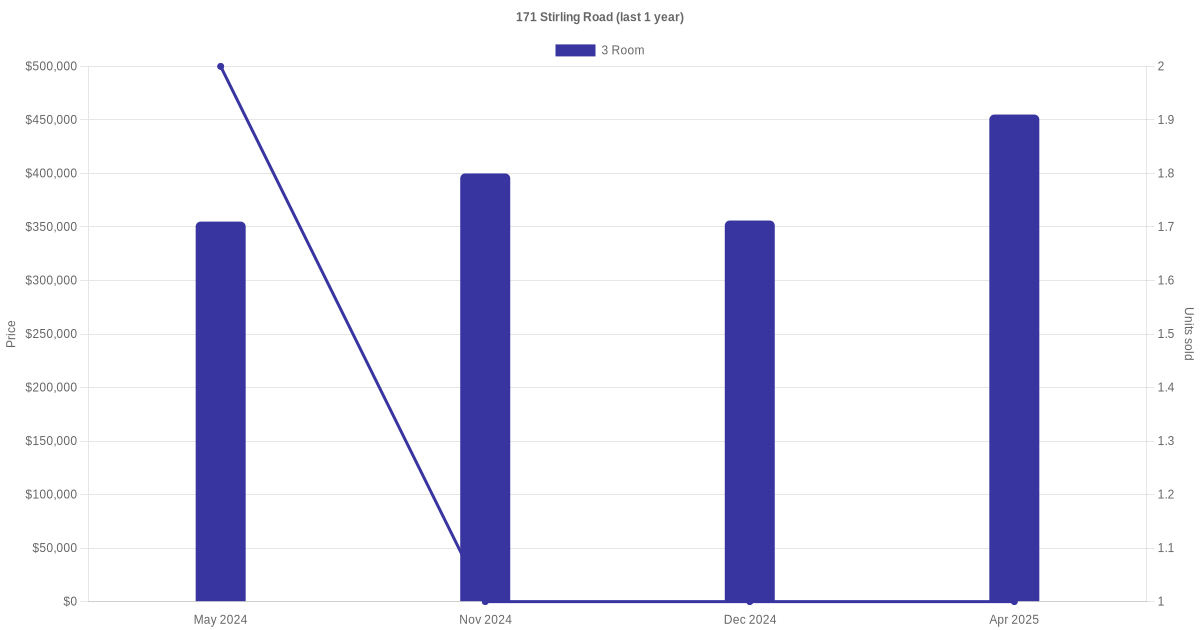 Below is a quick summary of the resale transactions volume and average price trends for the 3 room units at 171 Stirling Road.