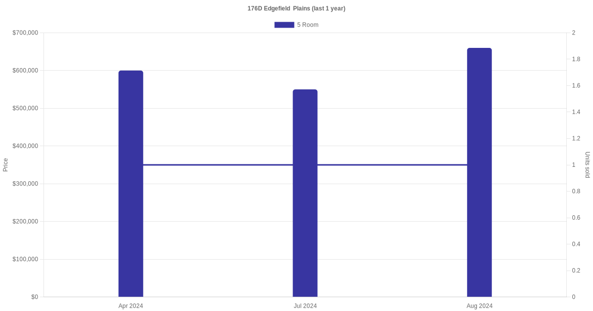 Below is a quick summary of the resale transactions volume and average price trends for the 4 room and 5 room units at 176D Edgefield Plains.