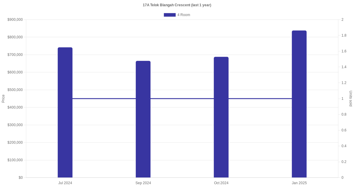 | Dec 2024 | $3,800 | 4 Room | Blk 17A Telok Blangah Crescent 4 Room | Bukit Merah |