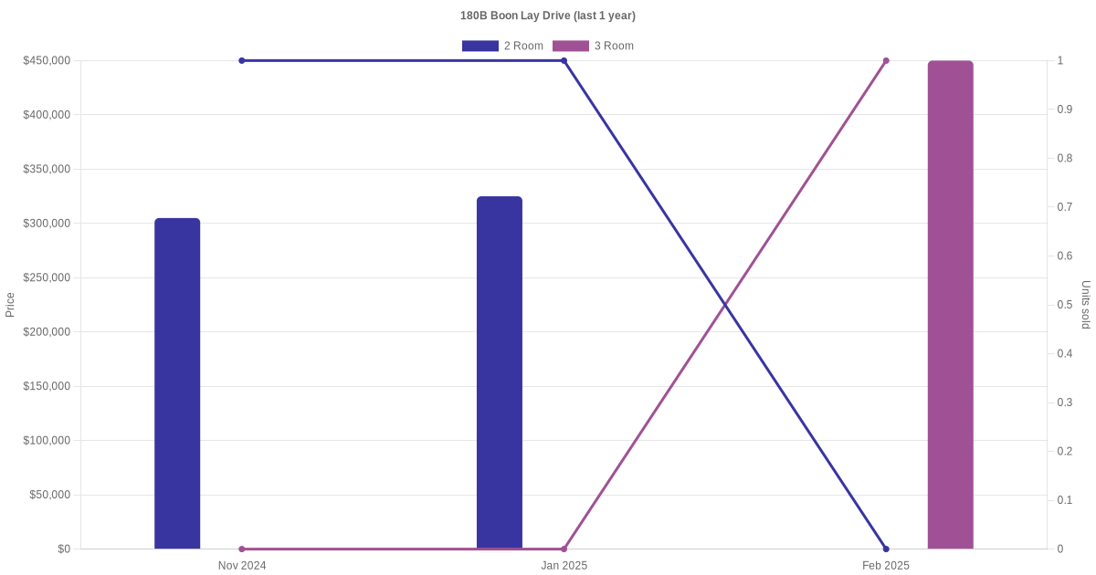 Here's a summary of the rental transactions and price trends for the 2 room and 3 room units at 180B Boon Lay Drive.