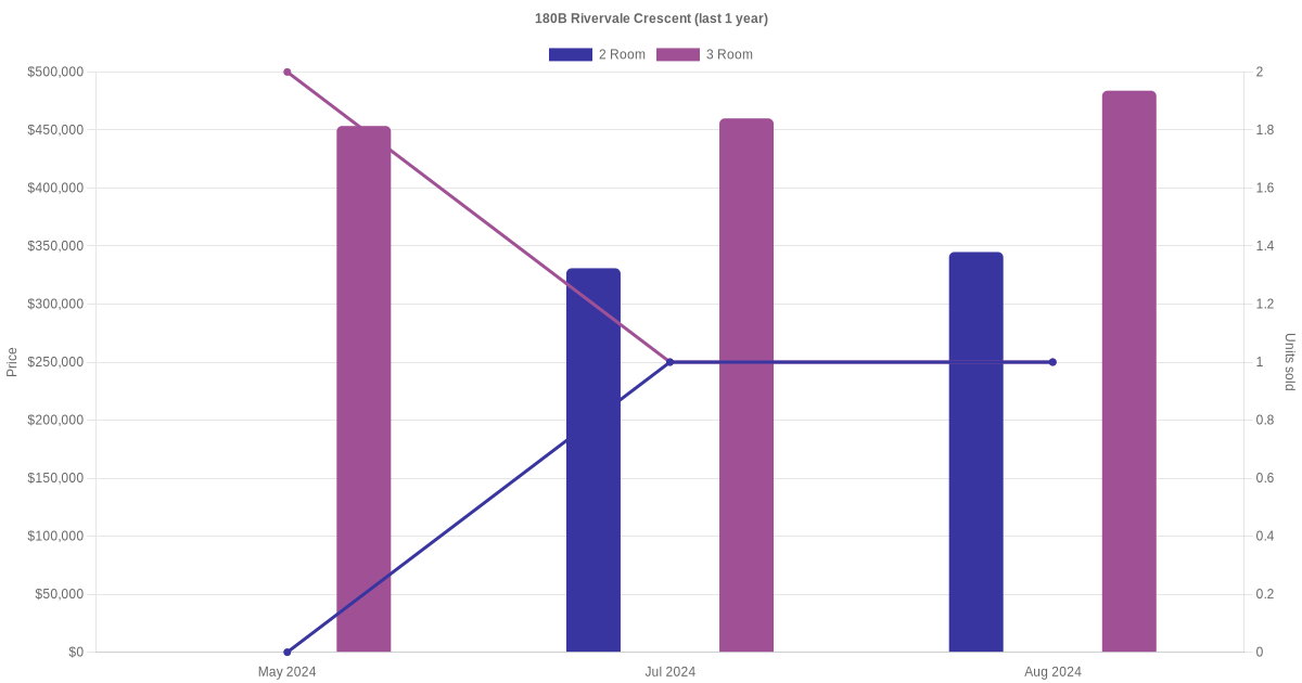 Here's a summary of the rental transactions and price trends for the 2 room and 3 room units at 180B Rivervale Crescent.