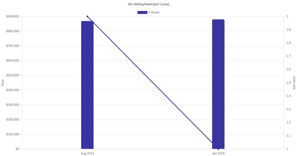 There were a total of 8 resale transactions in the last 3 years for units in block 181 Stirling Road, with the latest one recorded in Sep 2025.
