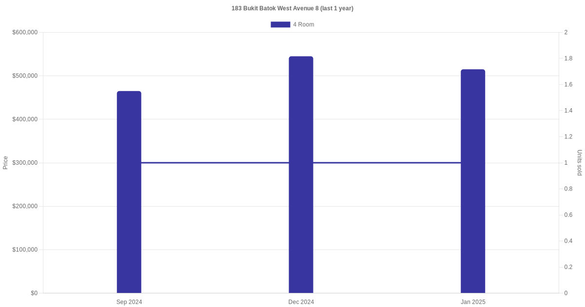 Below is a quick summary of the resale transactions volume and average price trends for the 4 room units at 183 Bukit Batok West Avenue 8.