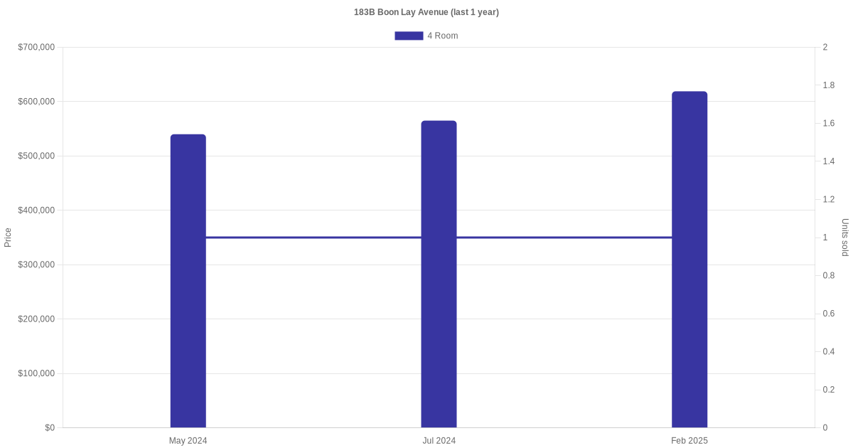 | Jun 2025 | $3,850 | 4 Room | Blk 183B Boon Lay Avenue 4 Room | Jurong West |