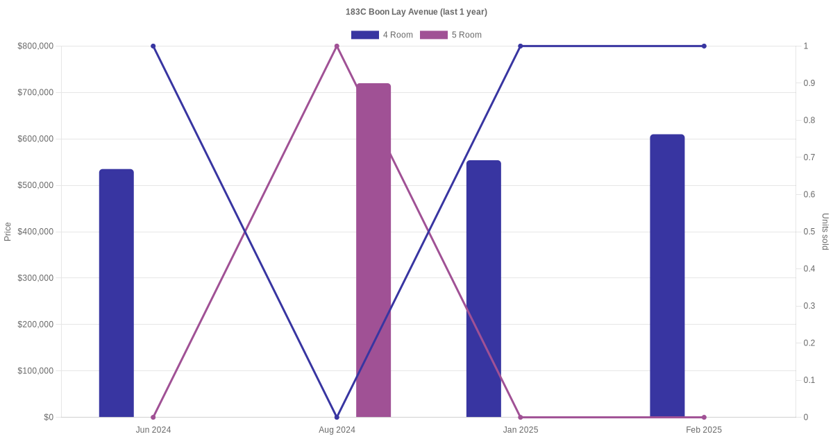 Here's a summary of the rental transactions and price trends for the 4 room and 5 room units at 183C Boon Lay Avenue.