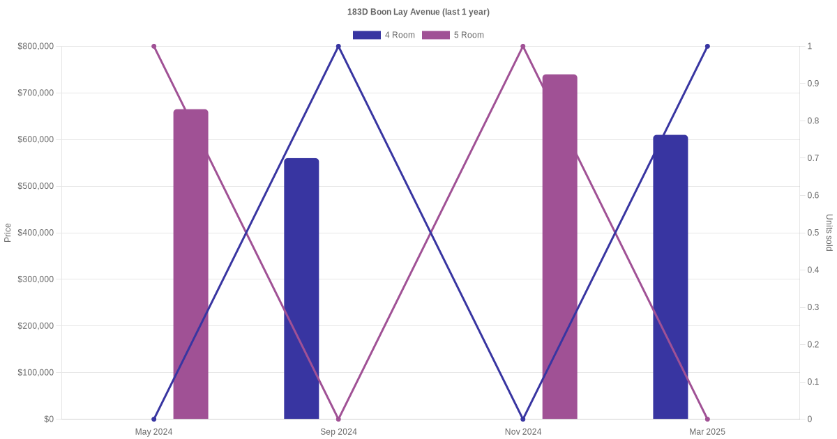 Here's a summary of the rental transactions and price trends for the 4 room and 5 room units at 183D Boon Lay Avenue.