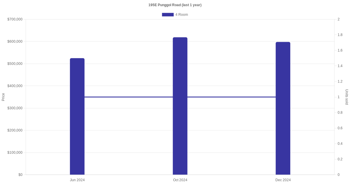 There were a total of 8 resale transactions in the last 3 years for units in block 195E Punggol Road, with the latest one recorded in Apr 2025.