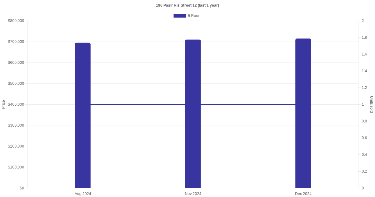 There were a total of 5 resale transactions in the last 3 years for units in block 196 Pasir Ris Street 12, with the latest one recorded in Dec 2024.