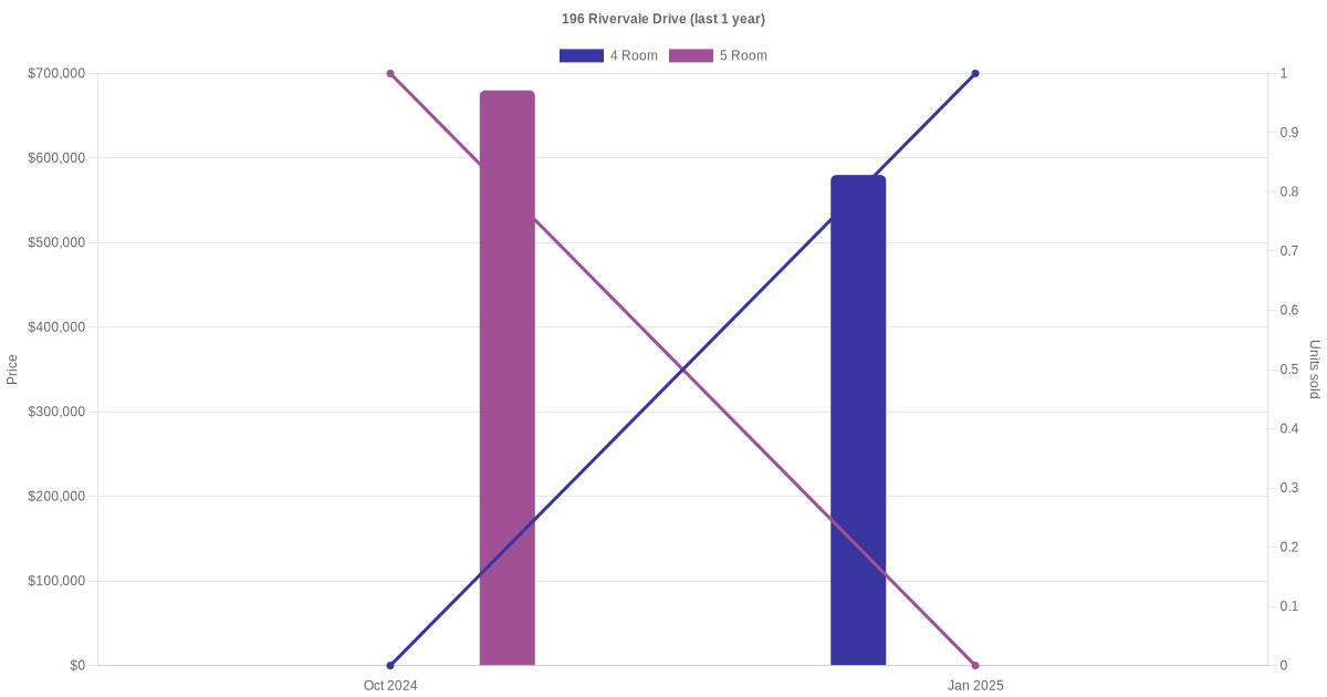 Here's a summary of the rental transactions and price trends for the 4 room and 5 room units at 196 Rivervale Drive.