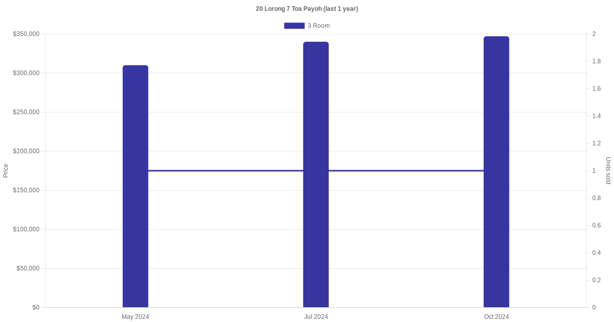 | Nov 2024 | $2,200 | 3 Room | Blk 20 Lorong 7 Toa Payoh 3 Room | Toa Payoh |
