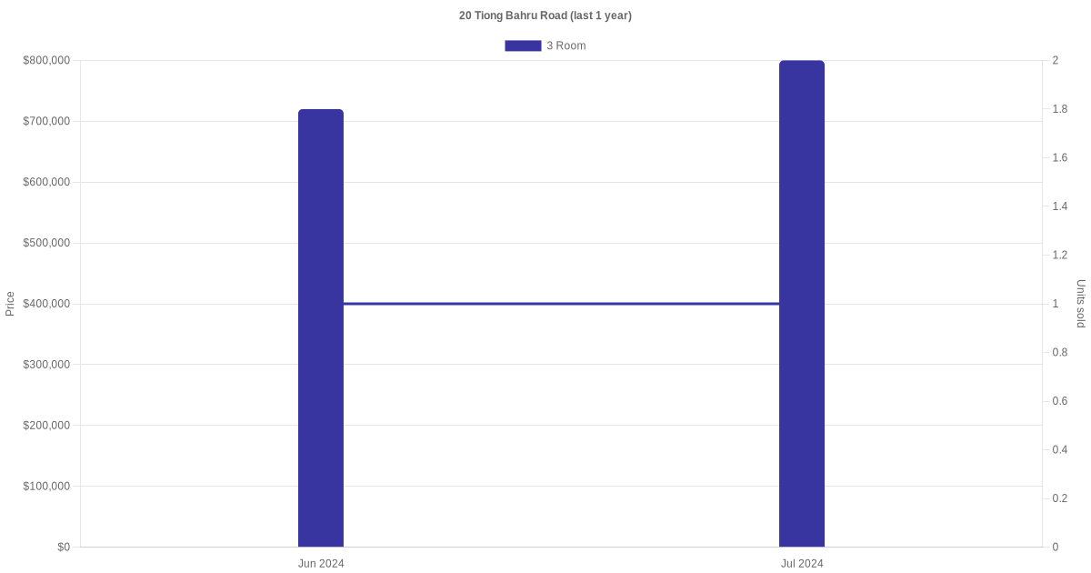 There were a total of 3 resale transactions in the last 3 years for units in block 20 Tiong Bahru Road, with the latest one recorded in Jul 2024.