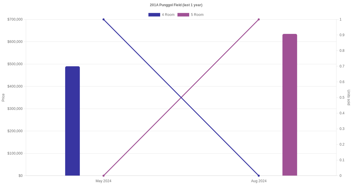 There were a total of 4 resale transactions in the last 3 years for units in block 201A Punggol Field, with the latest one recorded in Aug 2024.