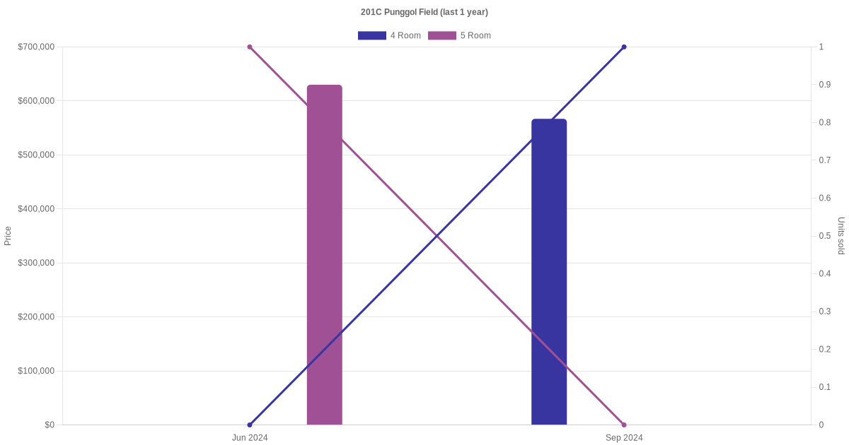 There were a total of 3 resale transactions in the last 3 years for units in block 201C Punggol Field, with the latest one recorded in Sep 2024.