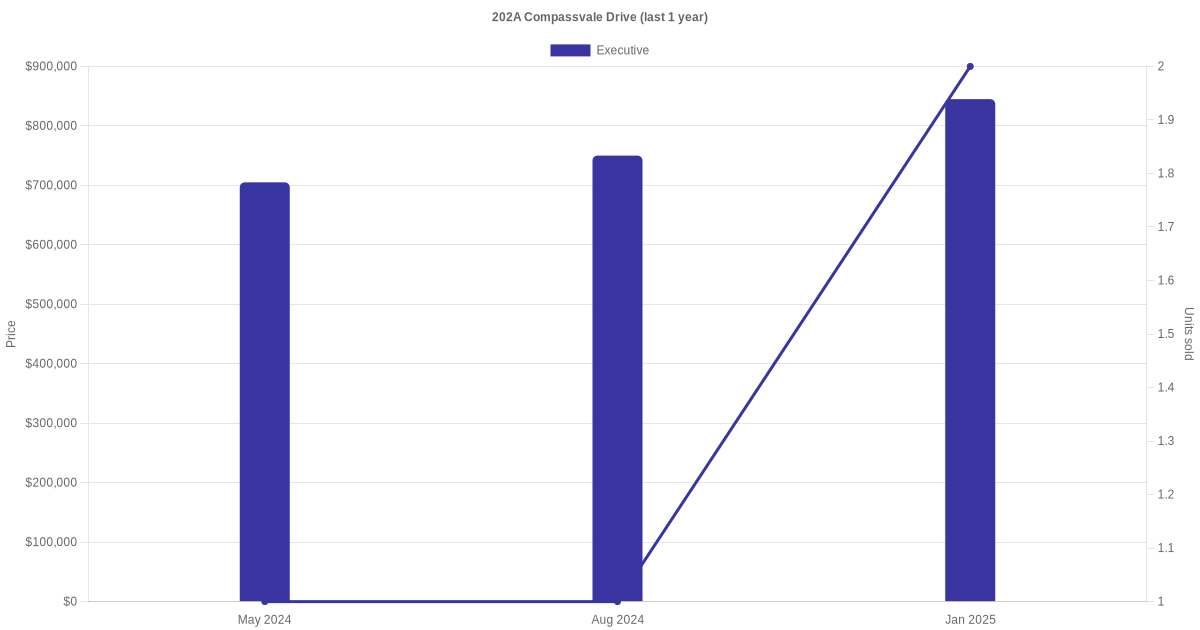 Here's a summary of the rental transactions and price trends for the executive units at 202A Compassvale Drive.