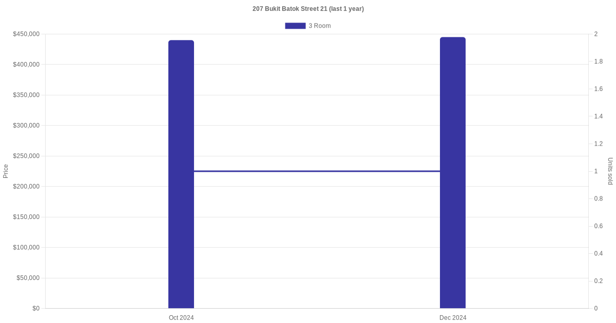 | Dec 2025 | $1,850 | 3 Room | Blk 207 Bukit Batok Street 21 3 Room | Bukit Batok |