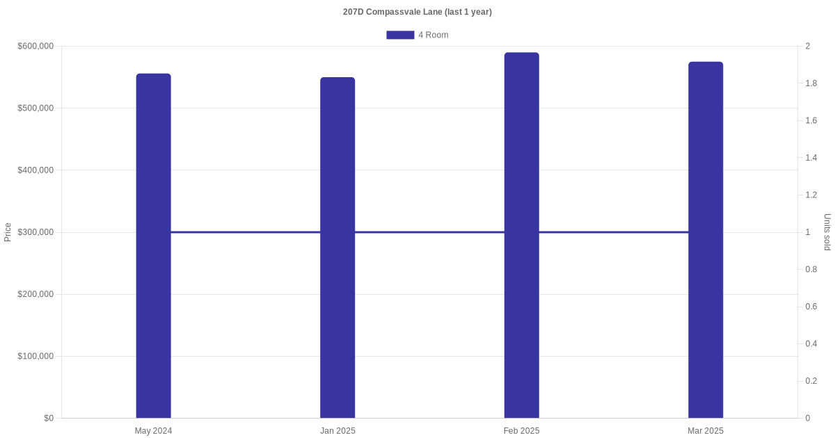 Below is a quick summary of the resale transactions volume and average price trends for the 4 room units at 207D Compassvale Lane.