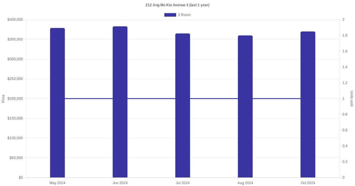 | Oct 2024 | $2,700 | 3 Room | Blk 212 Ang Mo Kio Avenue 3 3 Room | Ang Mo Kio |