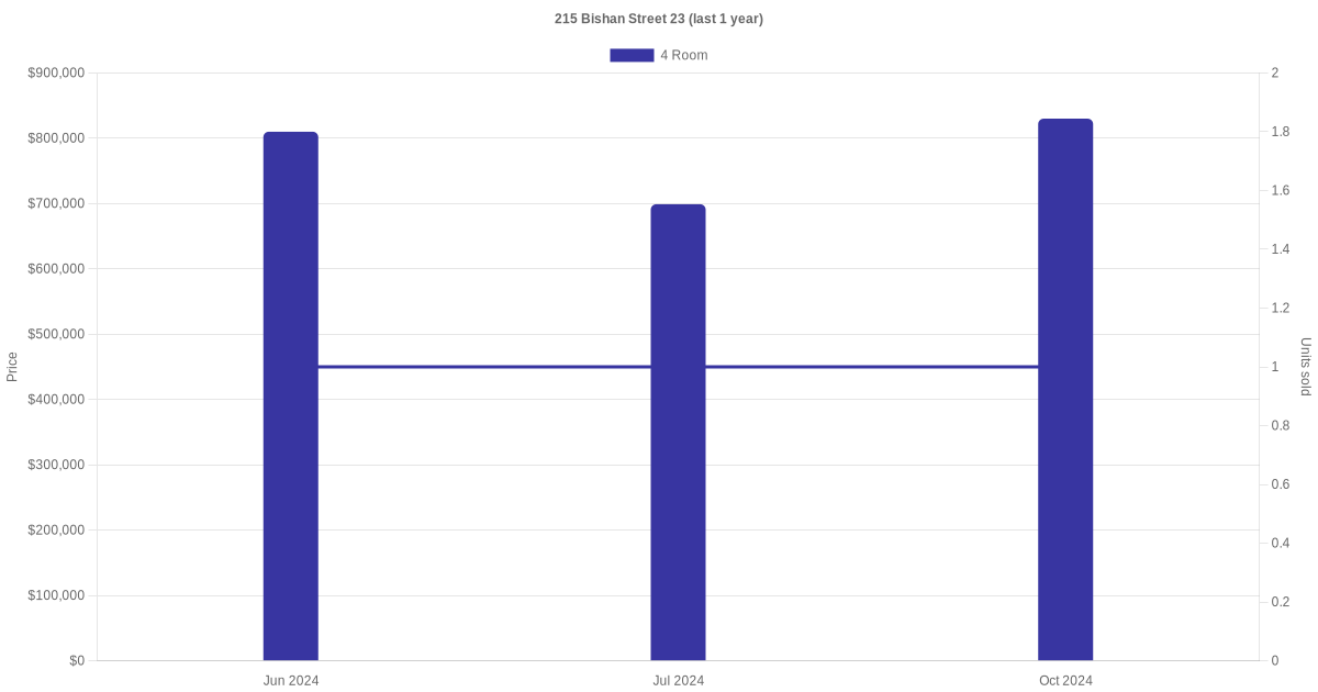 There were a total of 4 resale transactions in the last 3 years for units in block 215 Bishan Street 23, with the latest one recorded in Oct 2024.