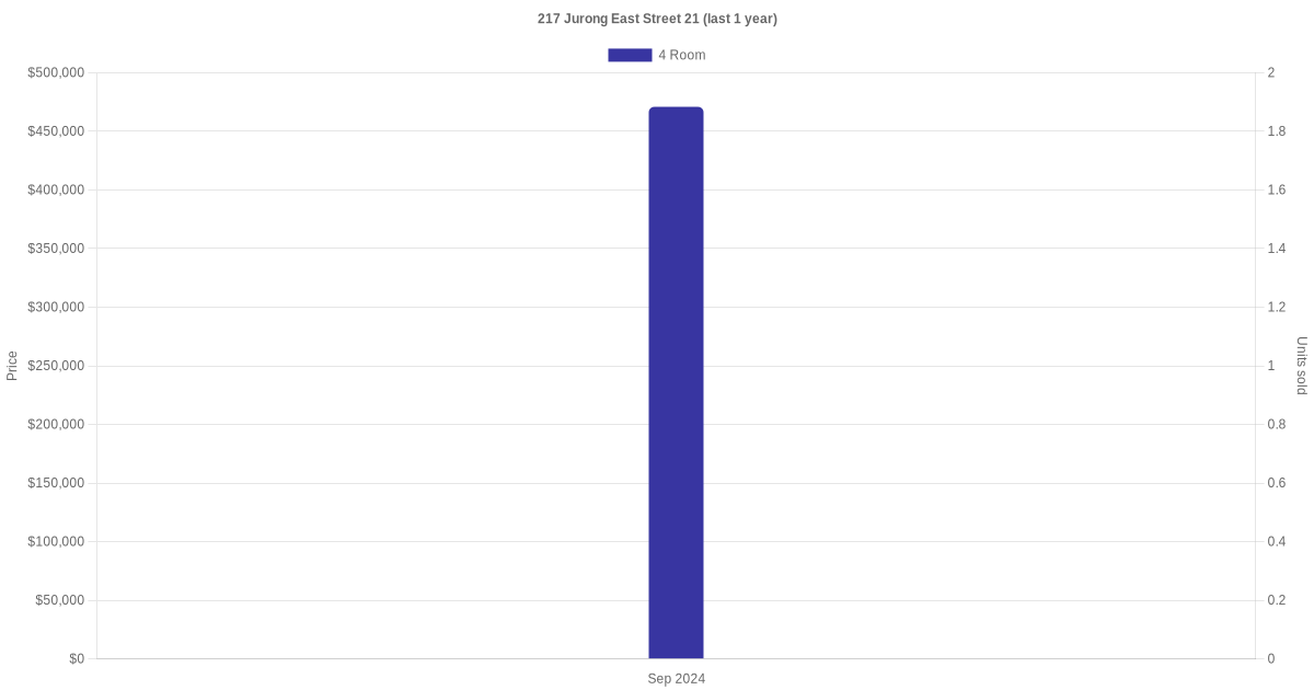 There were a total of 1 resale transactions in the last 3 years for units in block 217 Jurong East Street 21, with the latest one recorded in Sep 2024.
