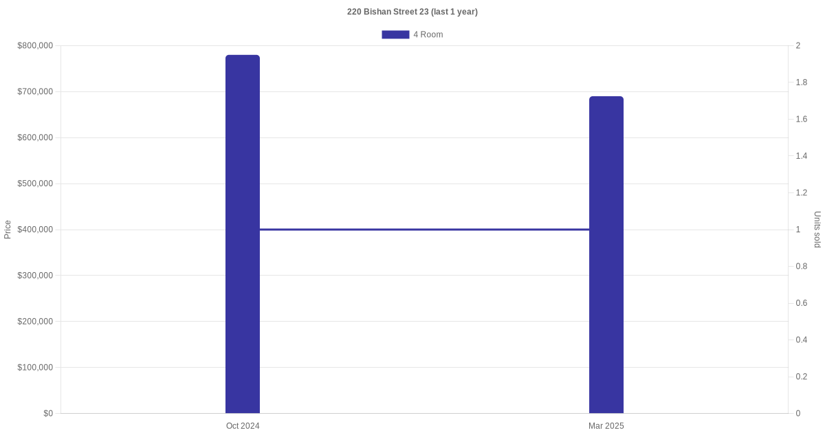 There were a total of 4 resale transactions in the last 3 years for units in block 220 Bishan Street 23, with the latest one recorded in Jun 2025.