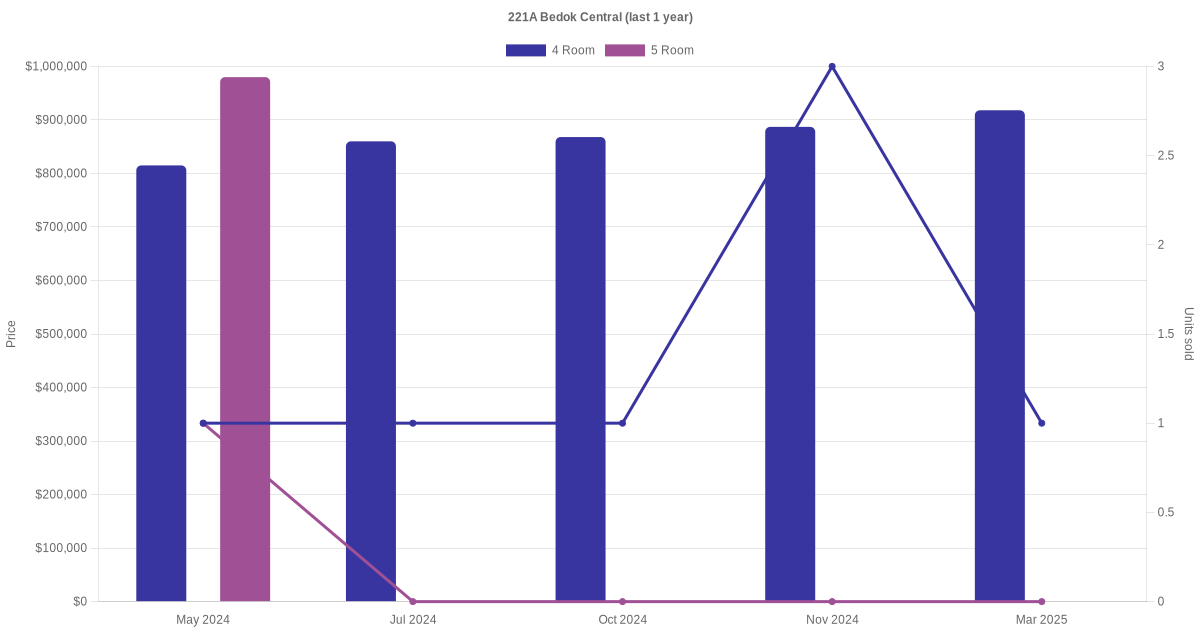 | Mar 2025 | $4,000 | 4 Room | Blk 221A Bedok Central 4 Room | Bedok |