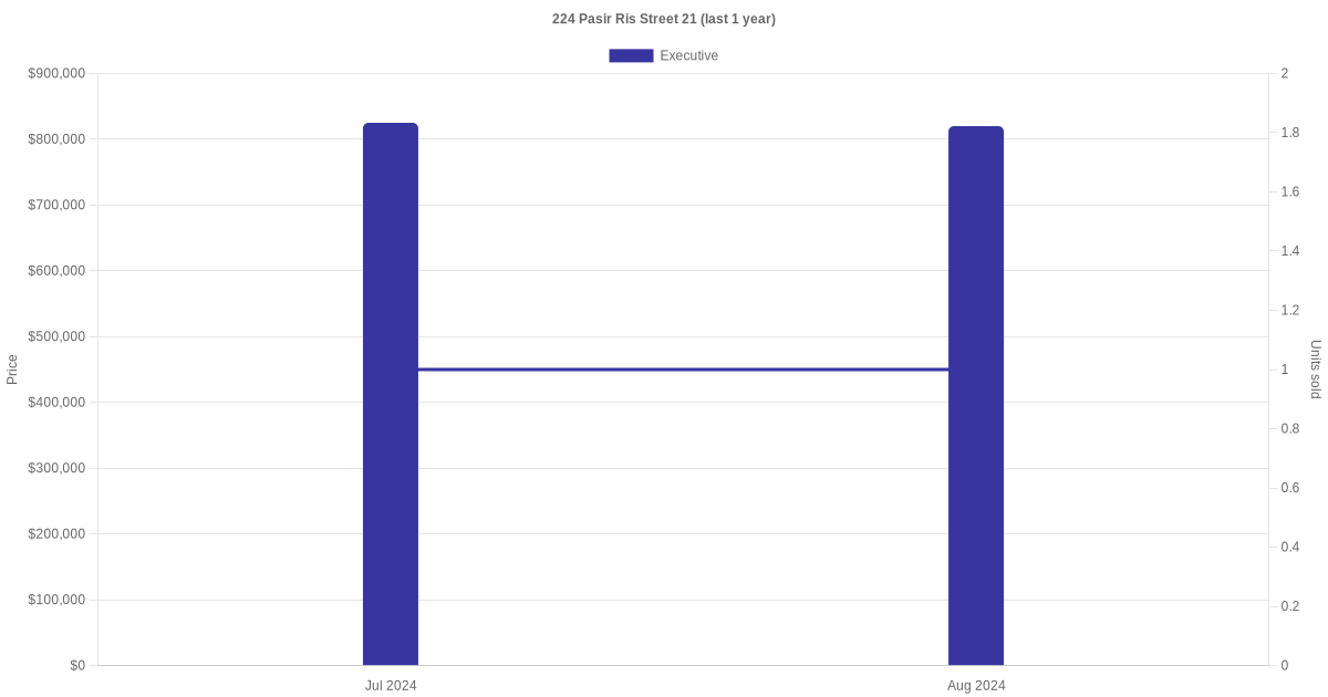 There were a total of 3 resale transactions in the last 3 years for units in block 224 Pasir Ris Street 21, with the latest one recorded in Aug 2024.