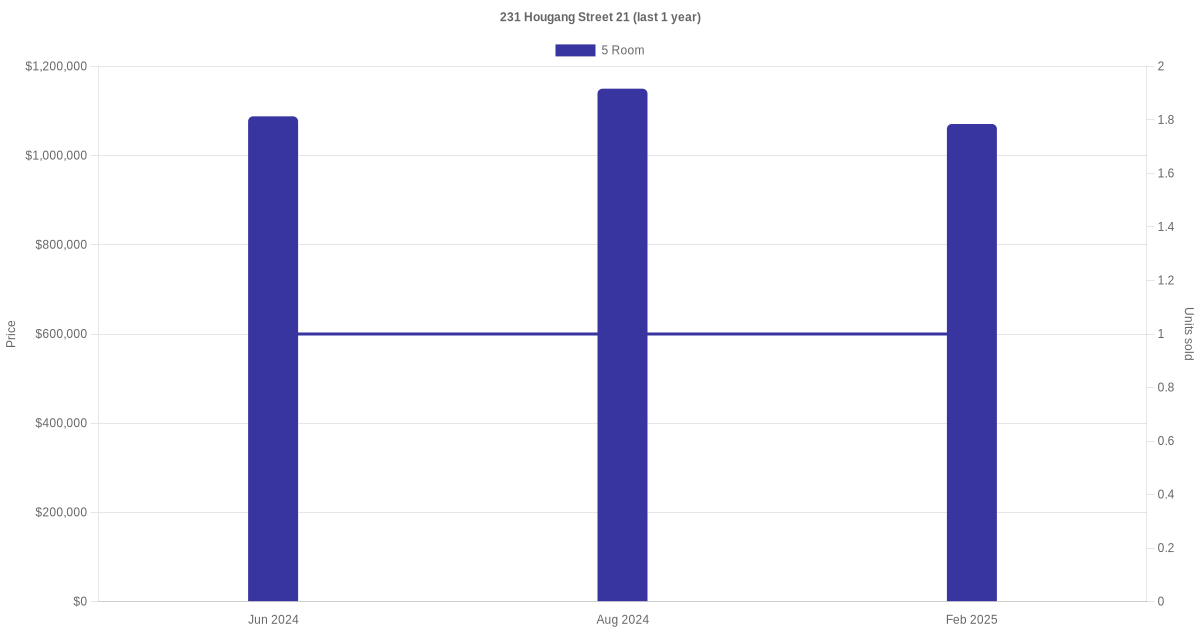 | Jan 2025 | $4,500 | 5 Room | Blk 231 Hougang Street 21 5 Room | Hougang |
