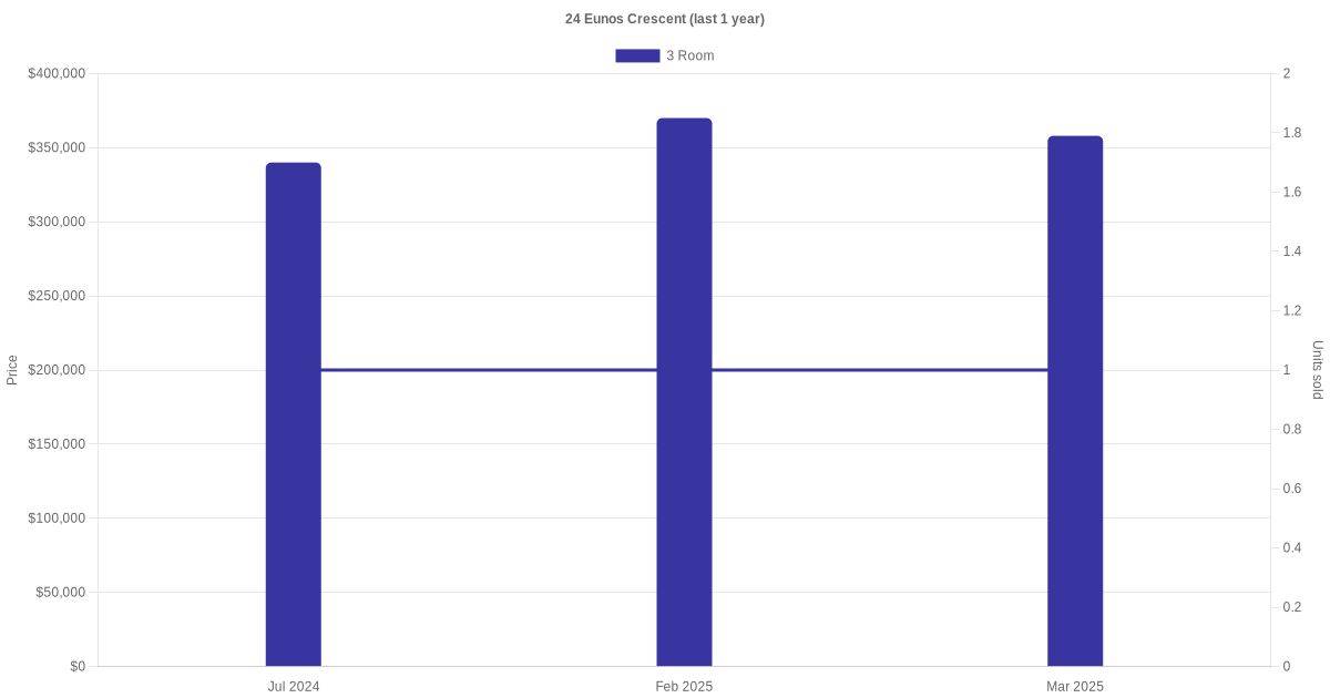 There were a total of 11 resale transactions in the last 3 years for units in block 24 Eunos Crescent, with the latest one recorded in Aug 2025.