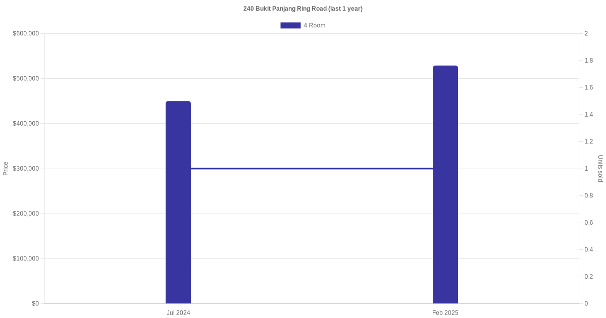 Below is a quick summary of the resale transactions volume and average price trends for the 4 room units at 240 Bukit Panjang Ring Road.
