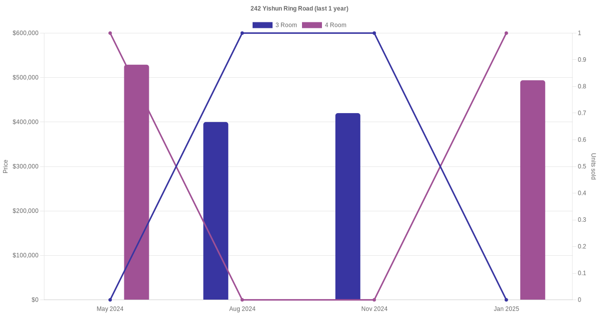 | May 2024 | $2,400 | 4 Room | Blk 242 Yishun Ring Road 4 Room | Yishun |