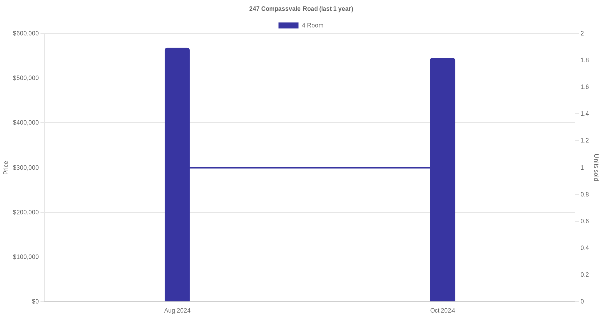 Below is a quick summary of the resale transactions volume and average price trends for the 4 room units at 247 Compassvale Road.