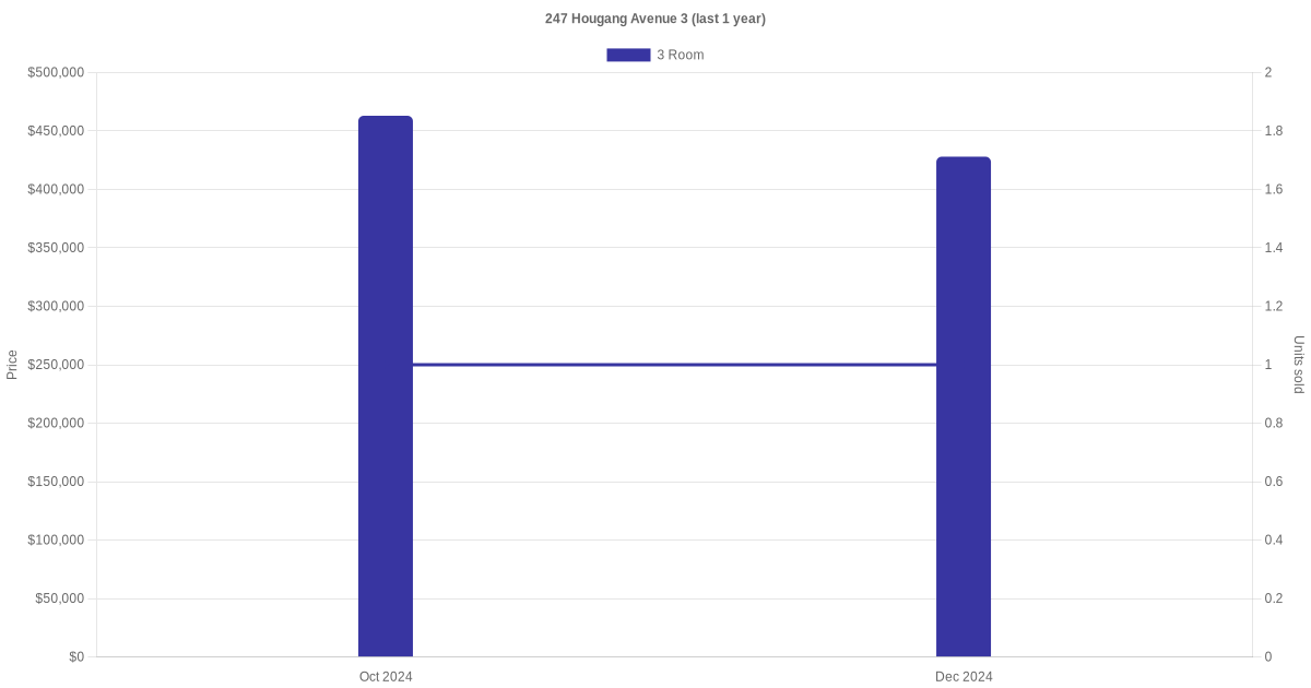Below is a quick summary of the resale transactions volume and average price trends for the 3 room units at 247 Hougang Avenue 3.