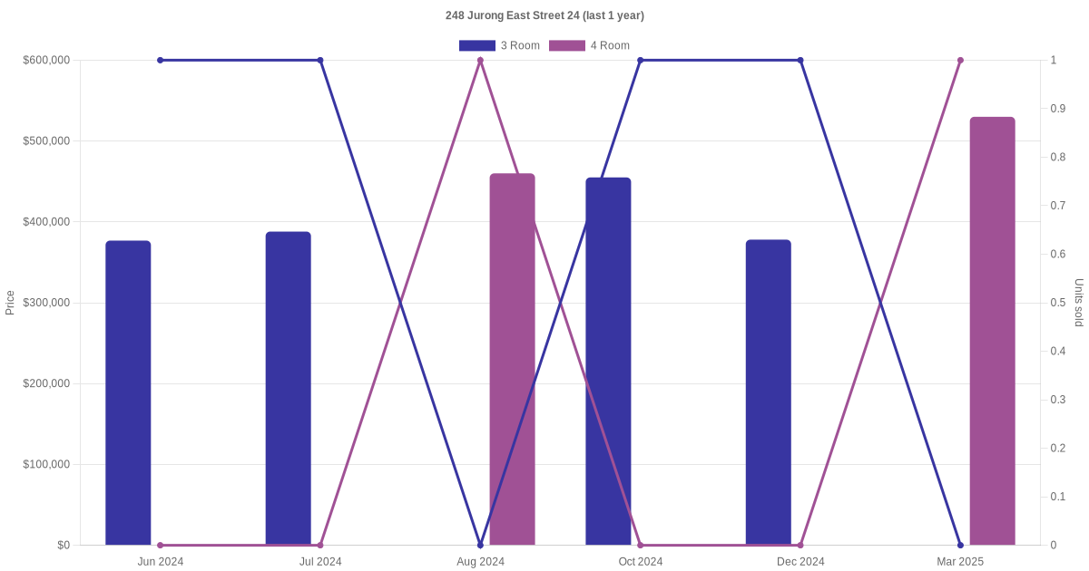 There were a total of 13 resale transactions in the last 3 years for units in block 248 Jurong East Street 24, with the latest one recorded in Sep 2025.