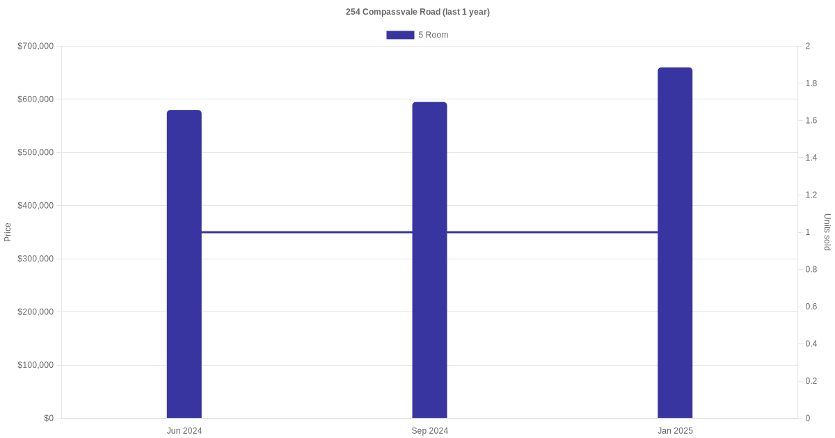 Below is a quick summary of the resale transactions volume and average price trends for the 5 room units at 254 Compassvale Road.