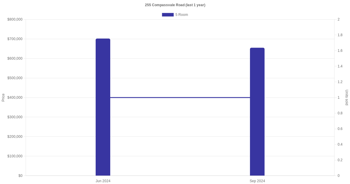 Below is a quick summary of the resale transactions volume and average price trends for the 5 room units at 255 Compassvale Road.