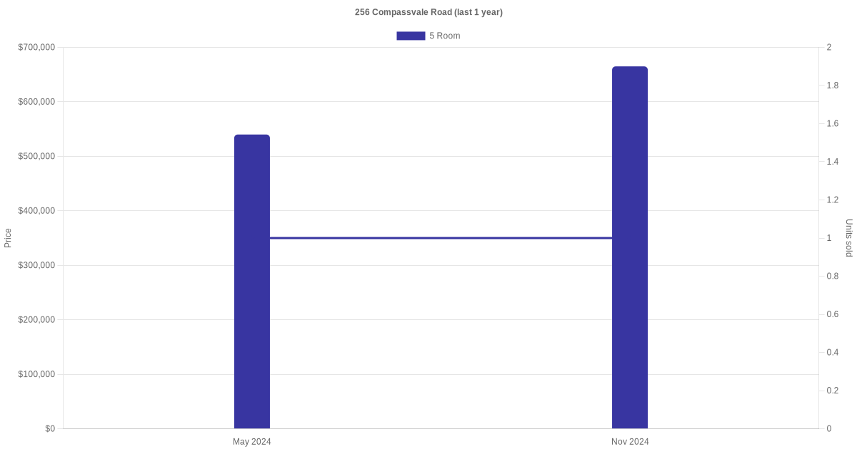 Below is a quick summary of the resale transactions volume and average price trends for the 5 room units at 256 Compassvale Road.
