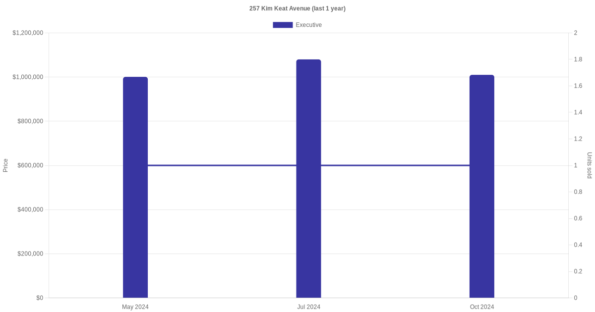 Below is a quick summary of the resale transactions volume and average price trends for the executive units at 257 Kim Keat Avenue.