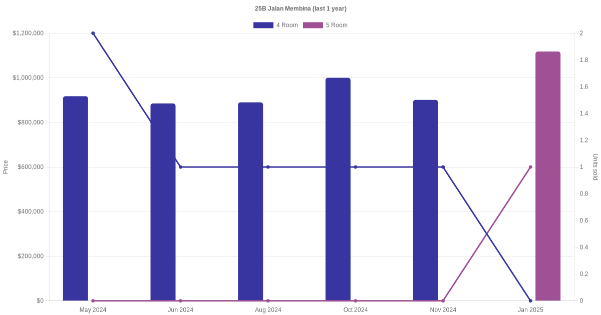 | Jan 2025 | $4,200 | 4 Room | Blk 25B Jalan Membina 4 Room | Bukit Merah |