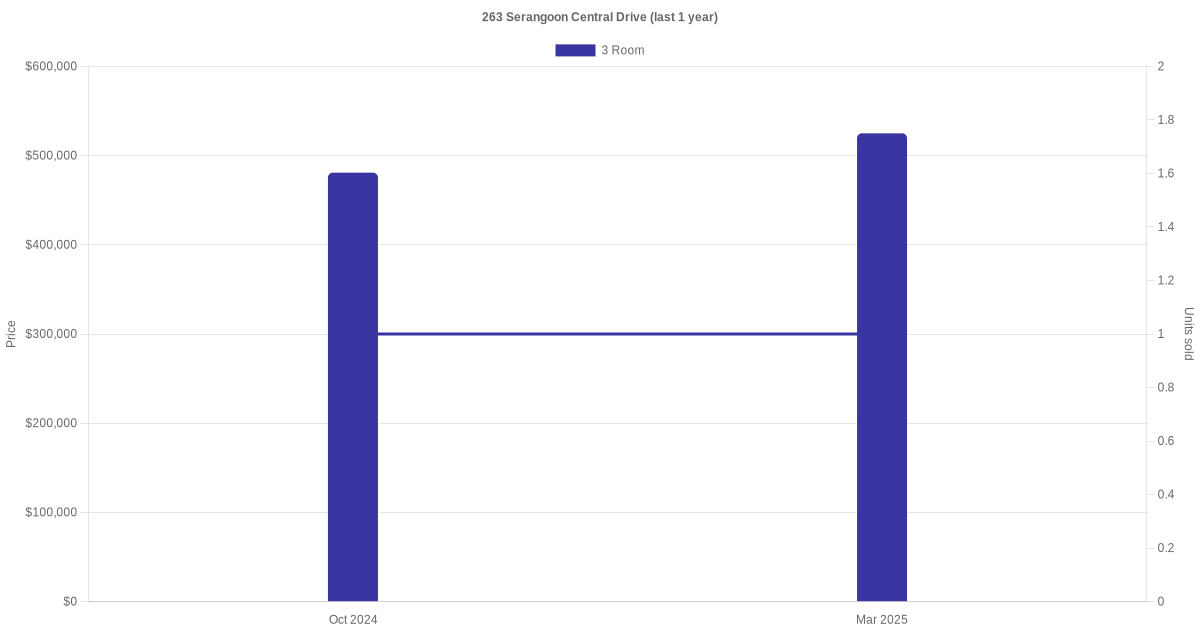 There were a total of 3 resale transactions in the last 3 years for units in block 263 Serangoon Central Drive, with the latest one recorded in Jun 2025.