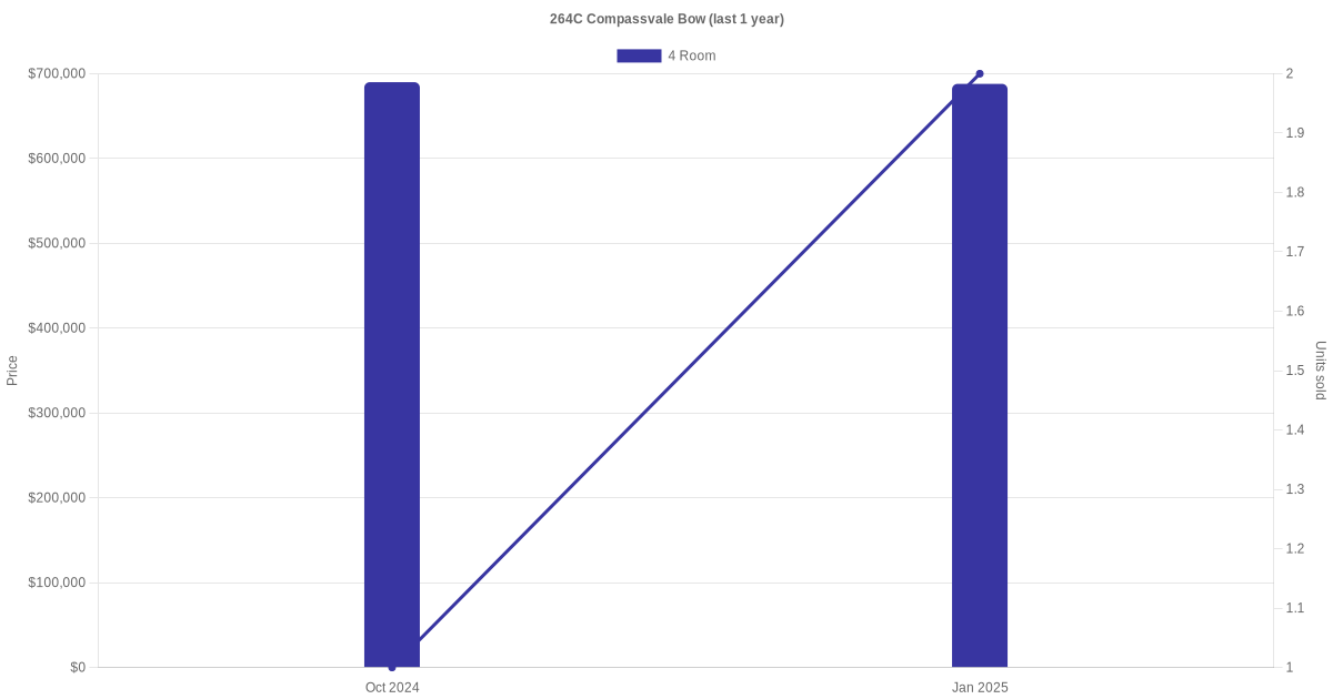 Here's a summary of the rental transactions and price trends for the 4 room units at 264C Compassvale Bow.