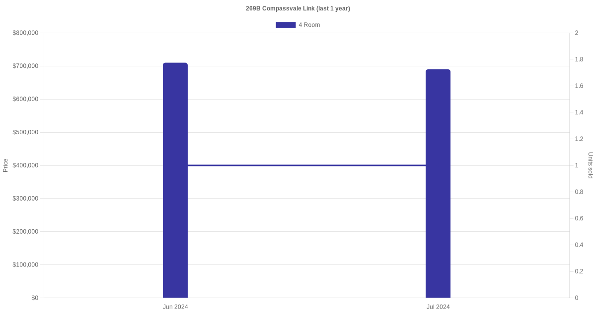 Below is a quick summary of the resale transactions volume and average price trends for the 4 room units at 269B Compassvale Link.