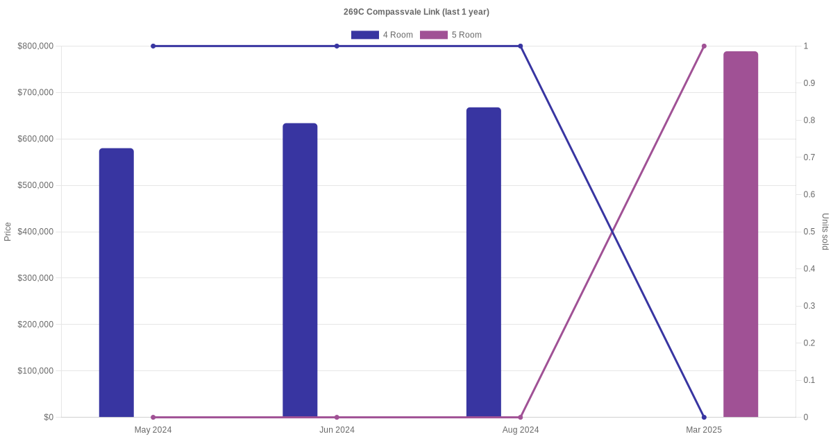 Here's a summary of the rental transactions and price trends for the 4 room and 5 room units at 269C Compassvale Link.