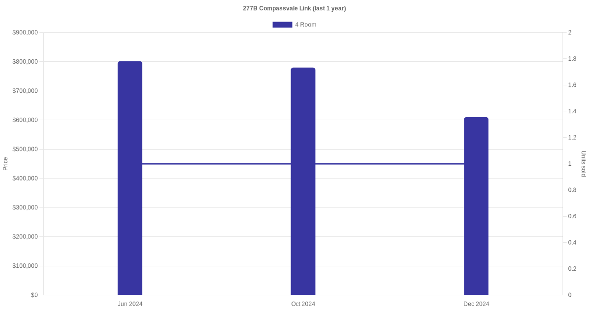 Below is a quick summary of the resale transactions volume and average price trends for the 4 room units at 277B Compassvale Link.