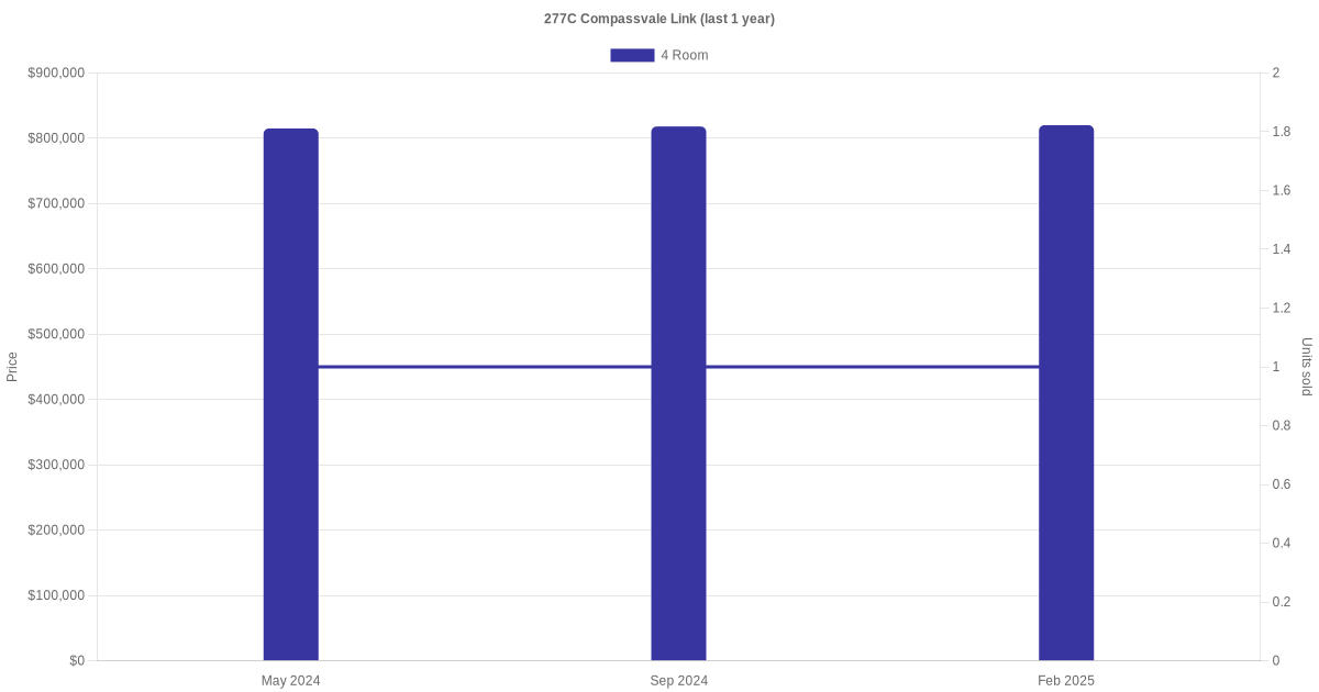 | Mar 2025 | $3,800 | 4 Room | Blk 277C Compassvale Link 4 Room | Sengkang |