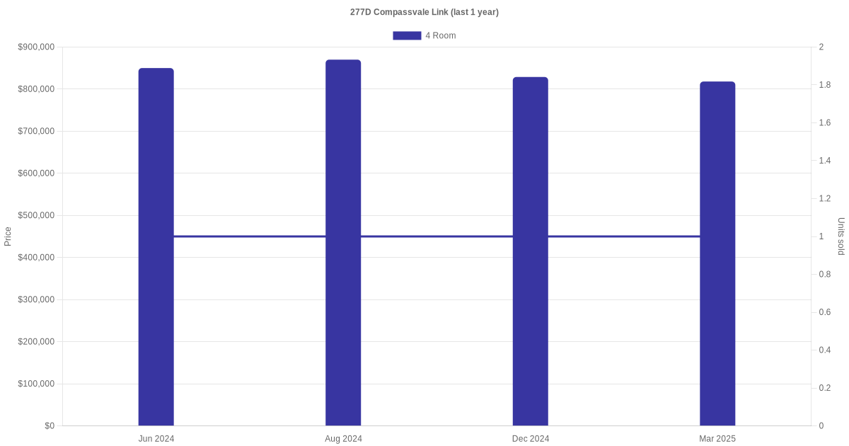 | Apr 2025 | $3,700 | 4 Room | Blk 277D Compassvale Link 4 Room | Sengkang |