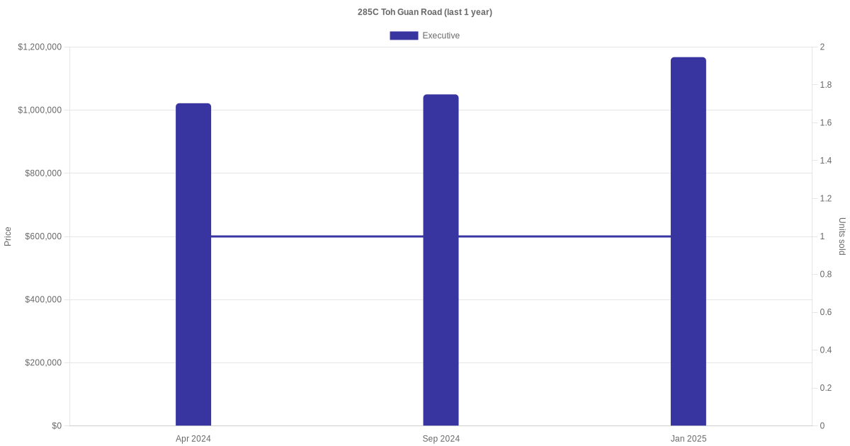 Here's a summary of the rental transactions and price trends for the executive units at 285C Toh Guan Road.