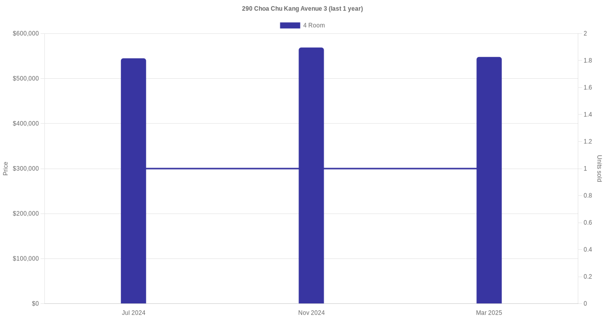 | Mar 2025 | $2,650 | 4 Room | Blk 290 Choa Chu Kang Avenue 3 4 Room | Choa Chu Kang |